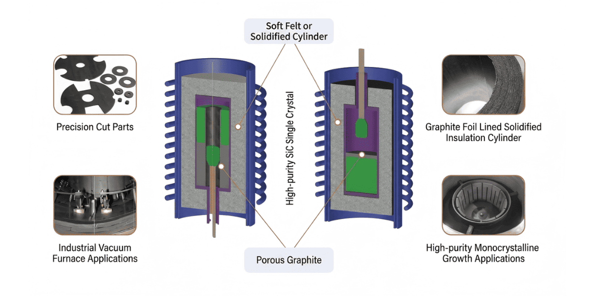 Semiconductor Production: This is a key insulation layer for monocrystalline silicon and SiC crystal growth furnace setups.